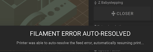Advanced filament monitoring checks actual vs commanded extrusion in realtime to detect feed issues before they ruin your print.