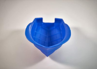 Most would think that to print this type part, you would need a dual-head printer to attain this kind of print quality. However, it was a creative approach of how to align the print and creatively use supports, we were able to position the boat on its stern (rear) on the print bed and its bow (nose) in the air at a 70 degree angle with only a few supports propping the boat up, connected to the hull in the new flat areas that are part of the boat’s design.